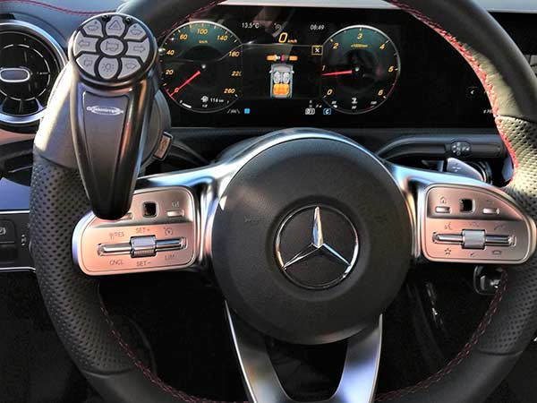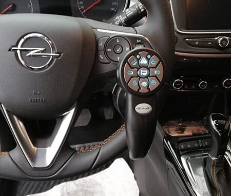 Questo semplice dispositivo permette di spostare i comandi del cambio luci, gli indicatori di direzione e l’avvisatore acustico dalla parte destra del volante, azionando così i comandi con l’arto valido destro. Tutti i comandi originali della vettura restano intatti e funzionanti.